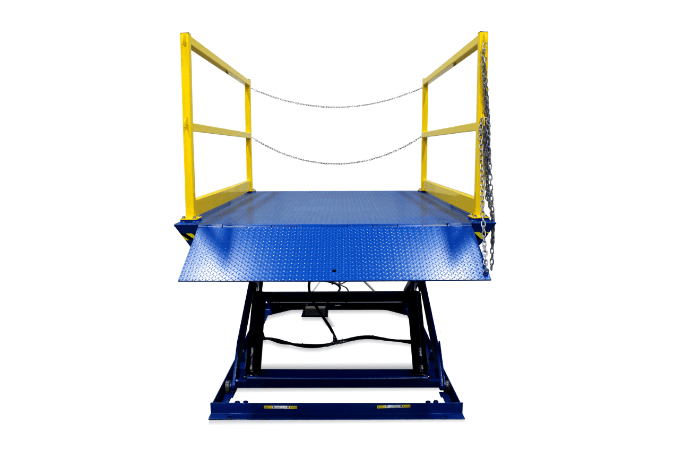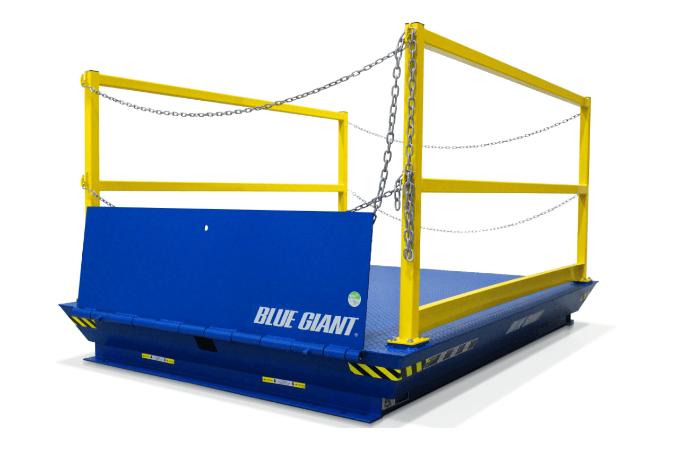 Une poutre de platelage sur toute la longueur assure un soutien maximal, et des pieds en acier massif garantissent une rigidité optimale. Les fusibles de sécurité de précision des vérins hydrauliques limitent la chute libre de la plateforme. Chaque élévateur de quai est équipé de mains courantes, d'une plinthe de 102 mm (4 po) et d'une chaîne de sécurité à chaque extrémité.- Brochure sur les solutions de quais de chargement BlueGiant.General.DocumentOnlyAvailableAnglais