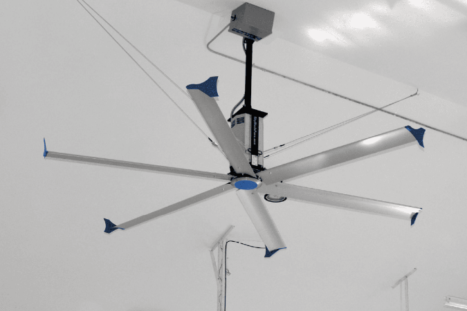 - Les pales de 12' (3,6 m) à 24' (7,3 m) propulsent l'air efficacement dans des espaces extra-larges